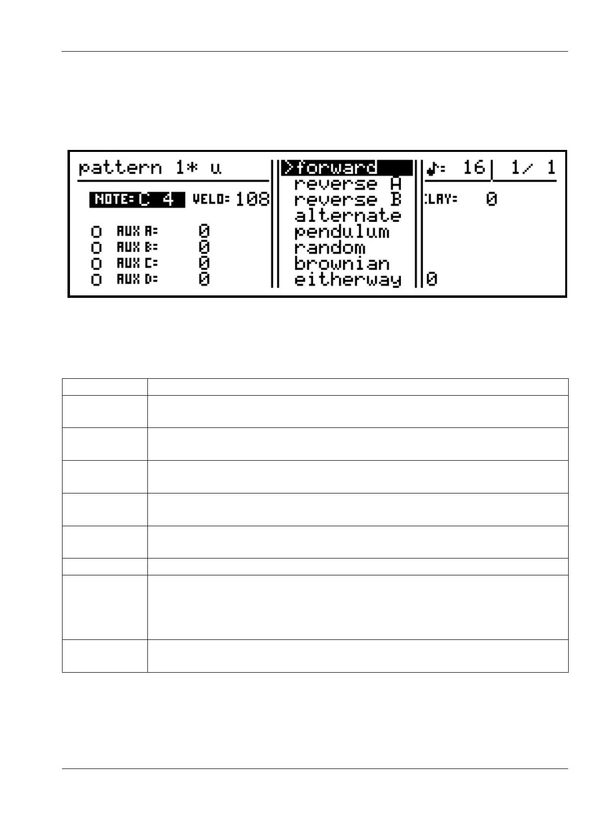 The direction setting for each pattern determines what order the steps will be played in.