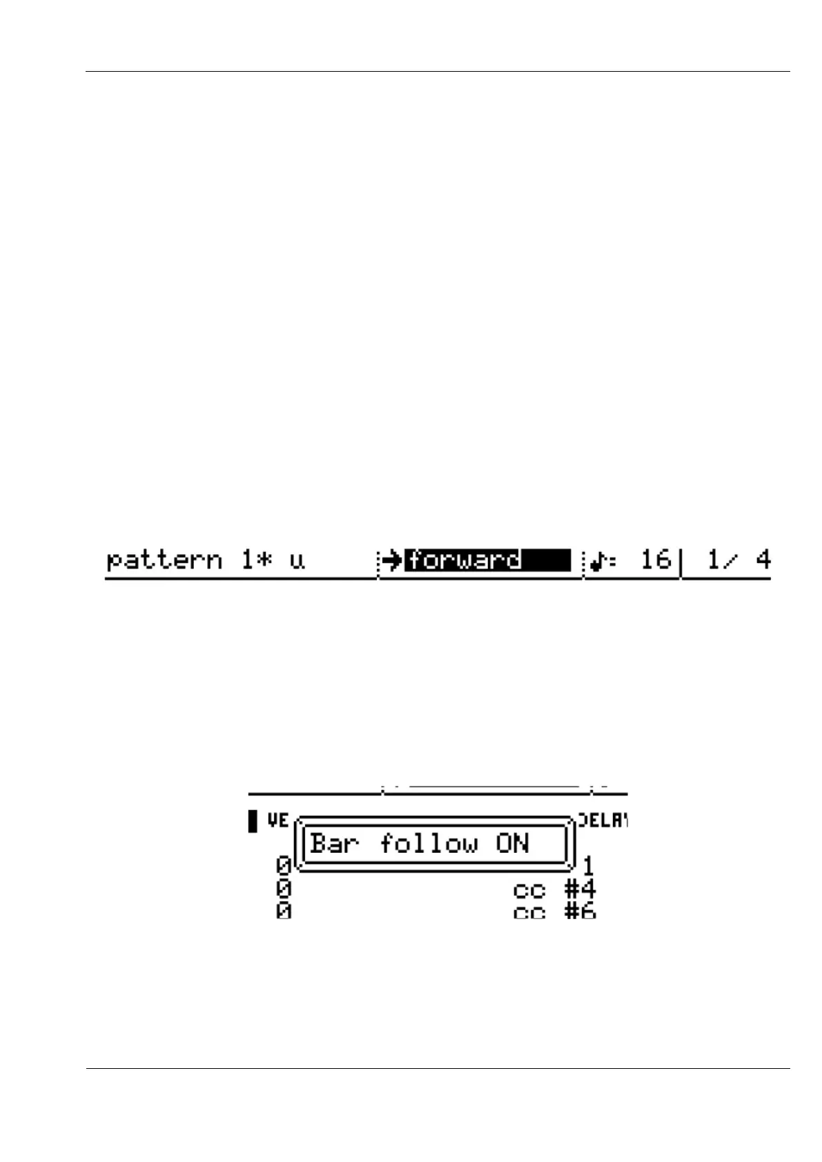 A message box should briefly appear in the display to confirm that bar follow is active: