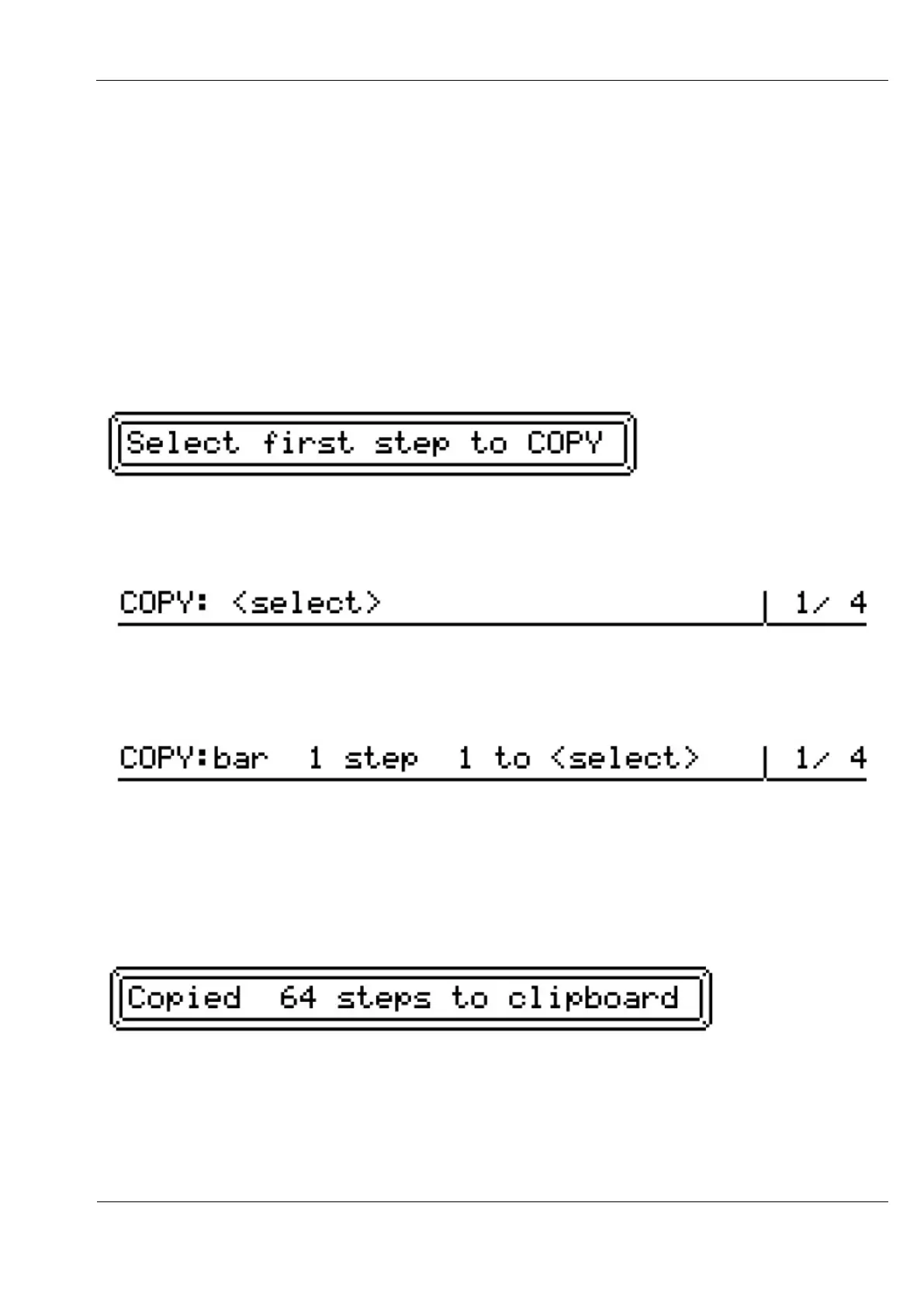 To copy steps, press the COPY key. This message will appear briefly: