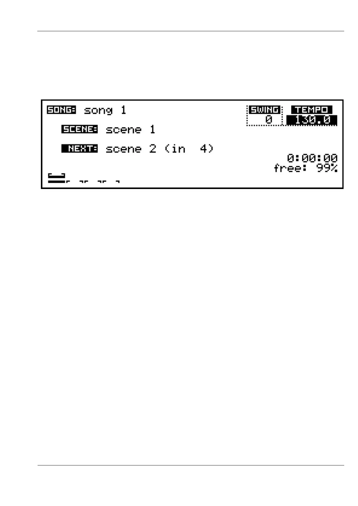 the first scene of the song will be loaded and the pattern assignments and initial active/mute