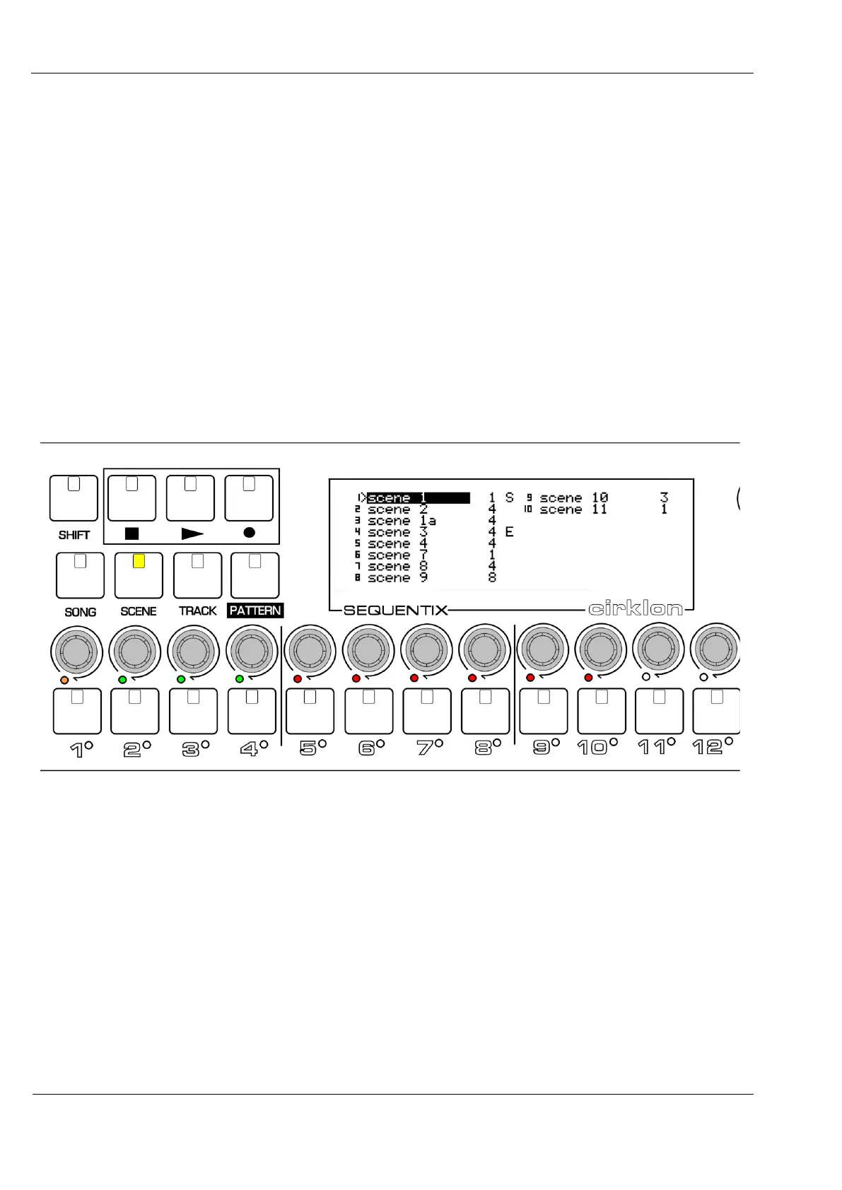 In the scene select view, each scene is mapped to one of the step encoders.