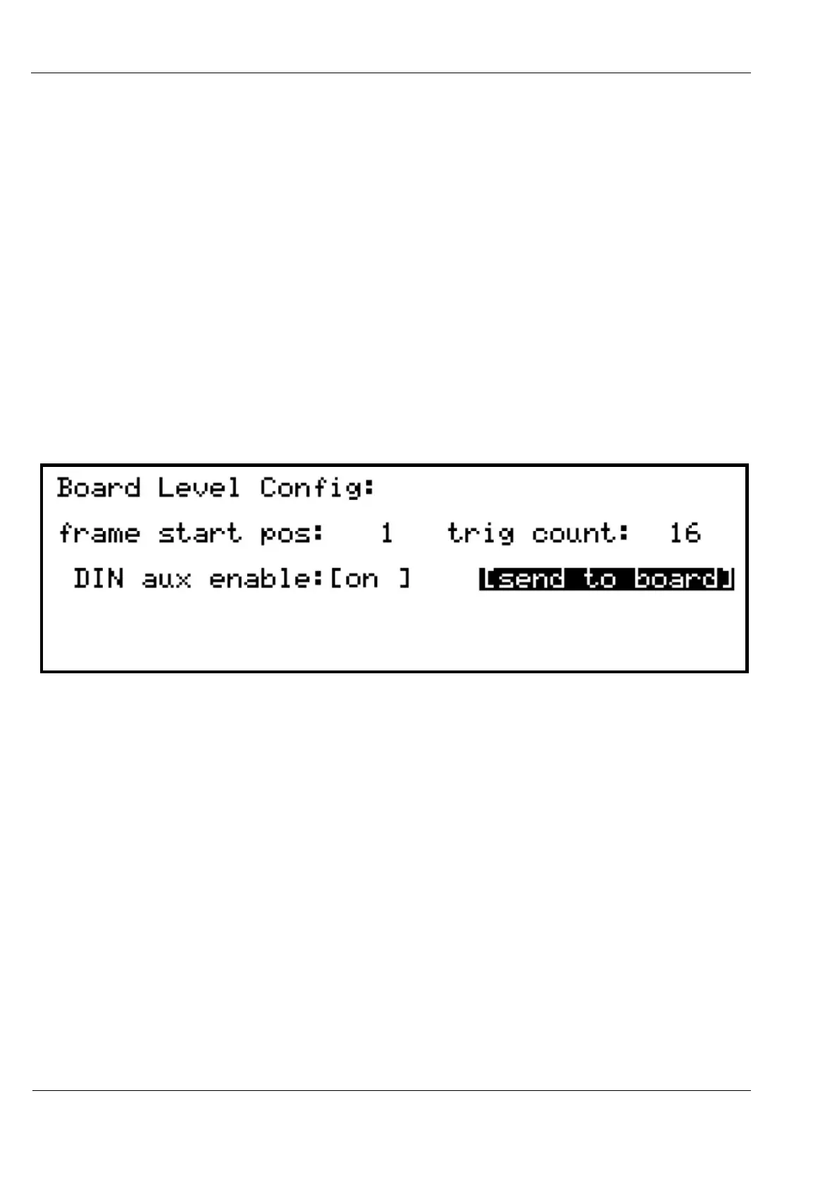 frame start pos = 1, trig count = 16 and DIN output enabled.