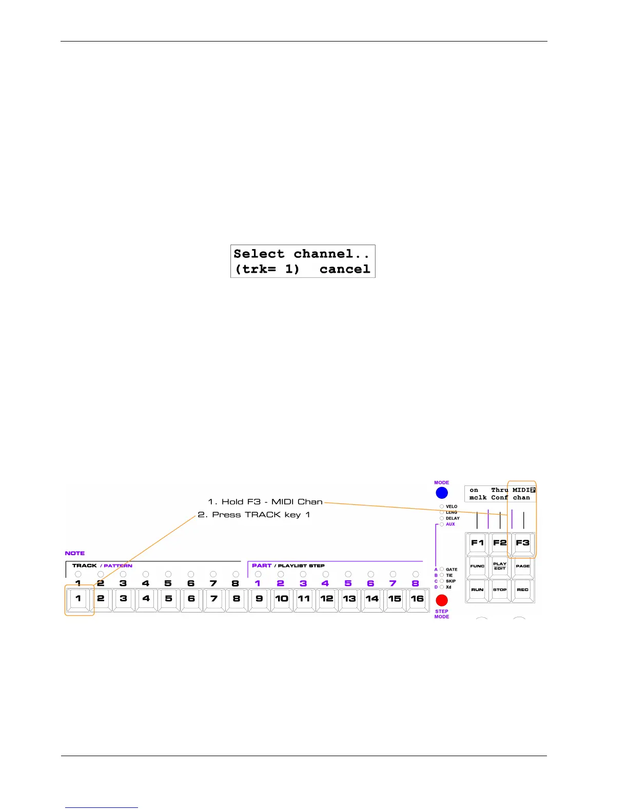 To change the MIDI channel, press the step key for the desired channel number, 1 to 16.