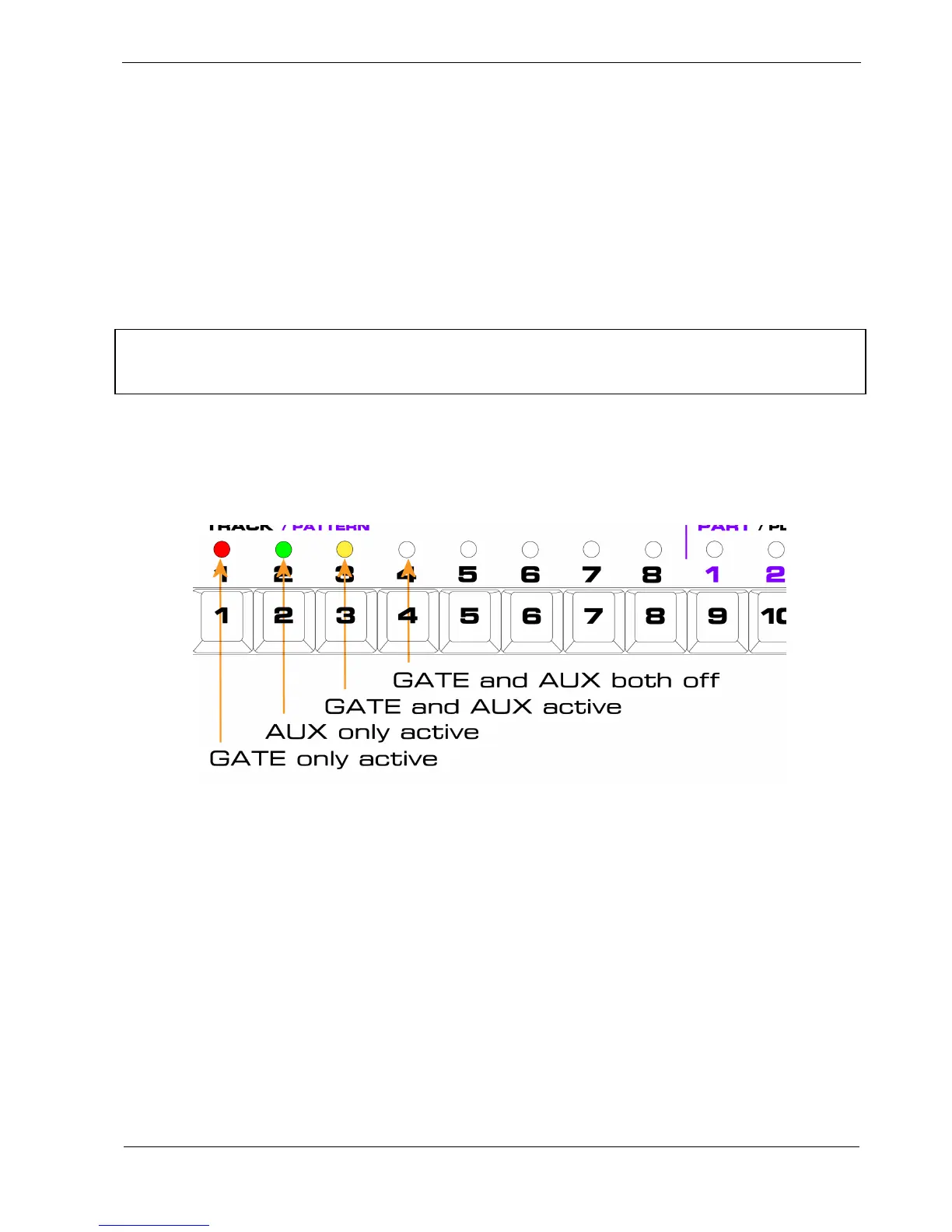 As with the other status rows, each press of a step key will toggle the aux status for that step on and
