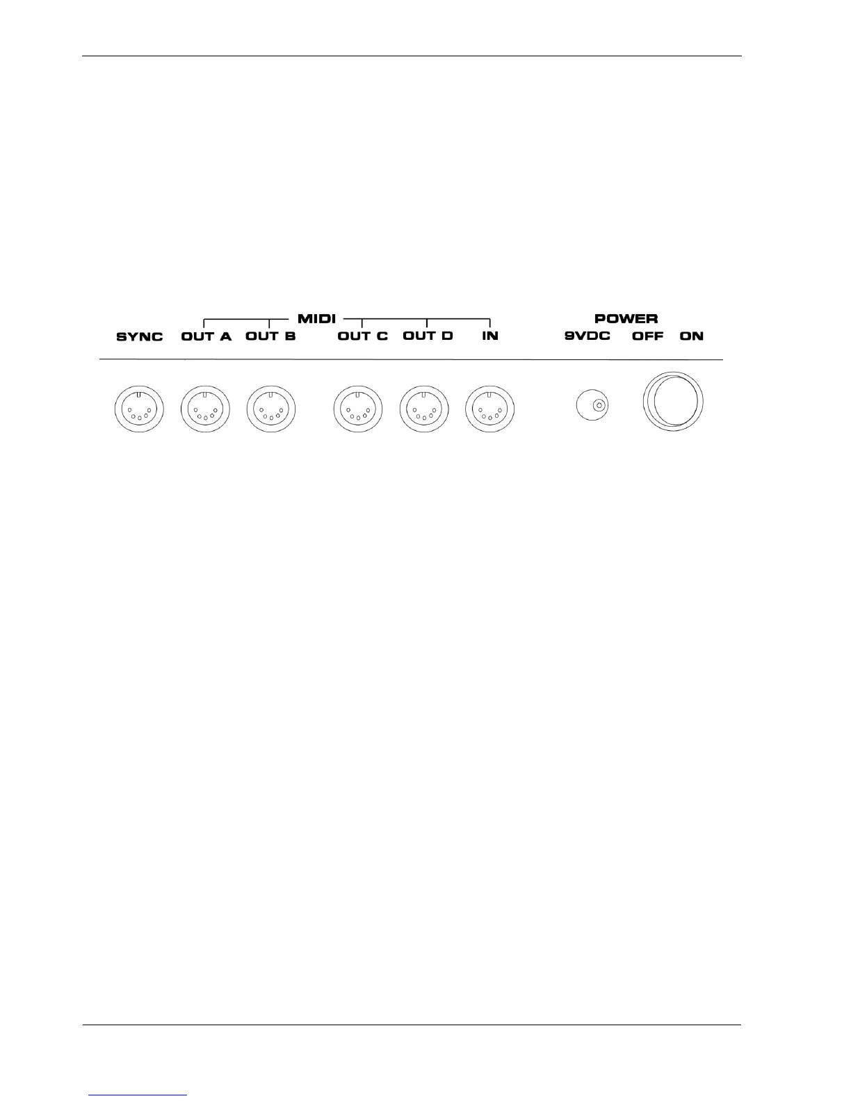 The MIDI and SYNC connections are all standard 5-pin DIN sockets.