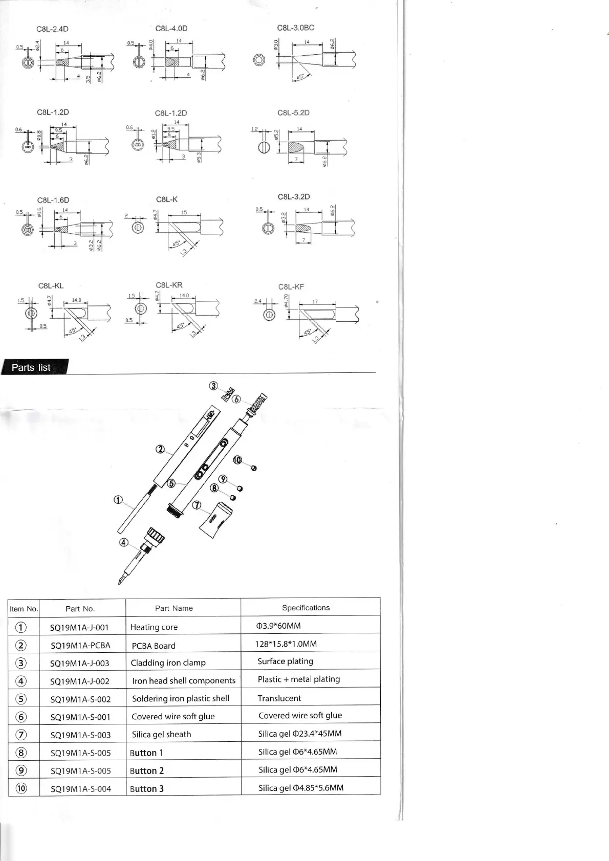 SEQURE SQ-A60 - Parts list