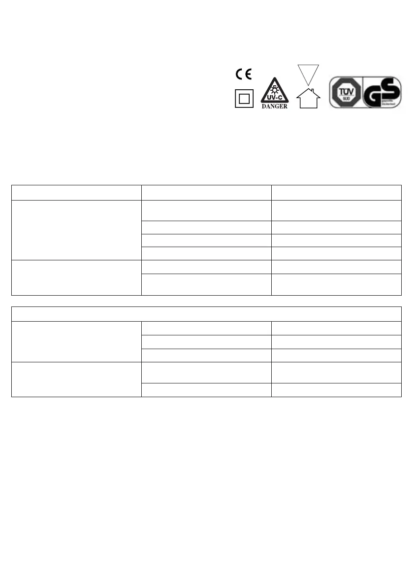 250 + UV, 400 + UV: 5 W