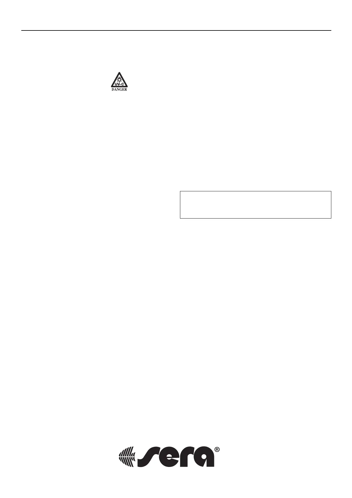 Thank you for purchasing the sera UV-C System 5 W. The sera UV-C System 5 W