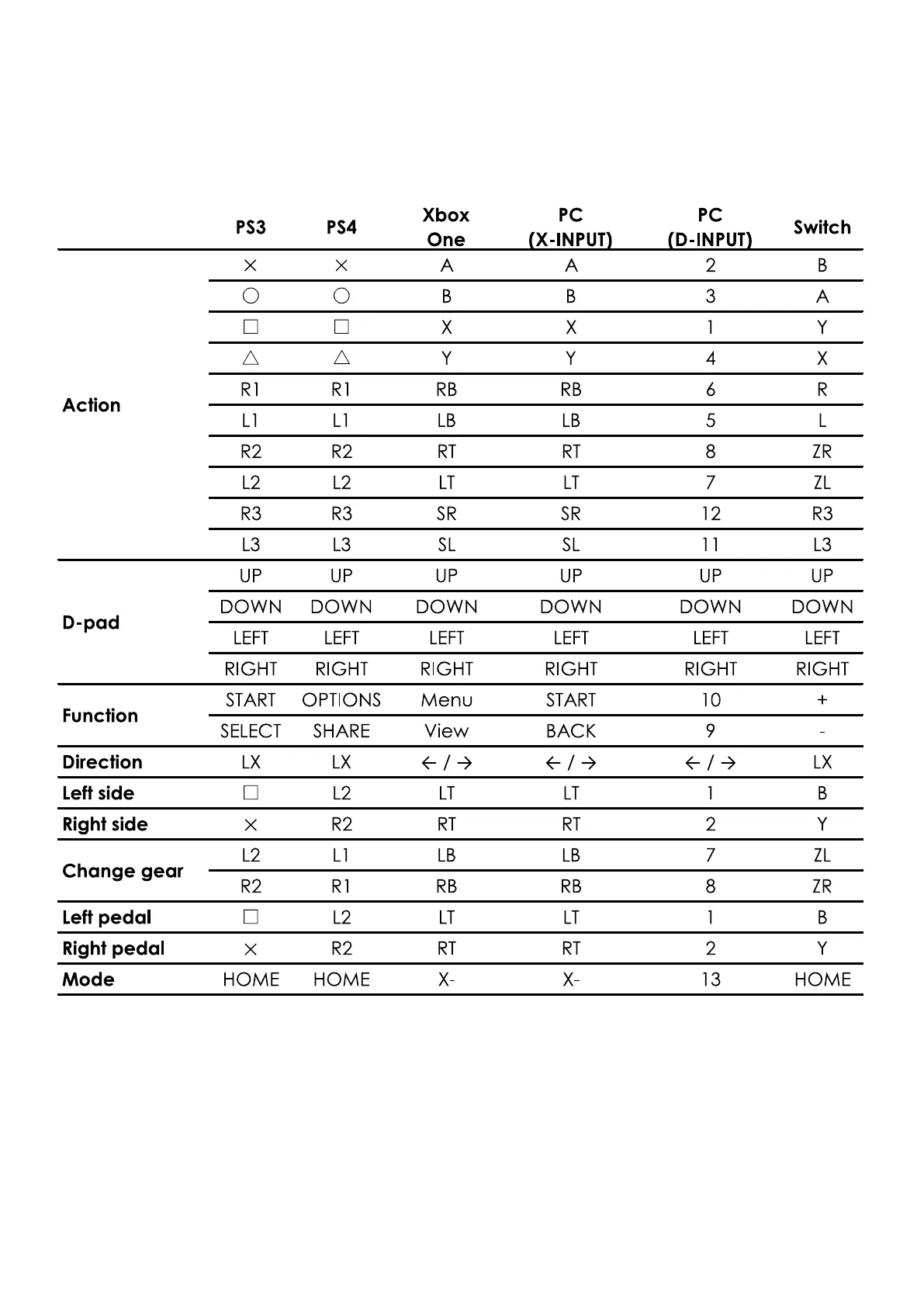 1. Button bindings for Serafim R1+: