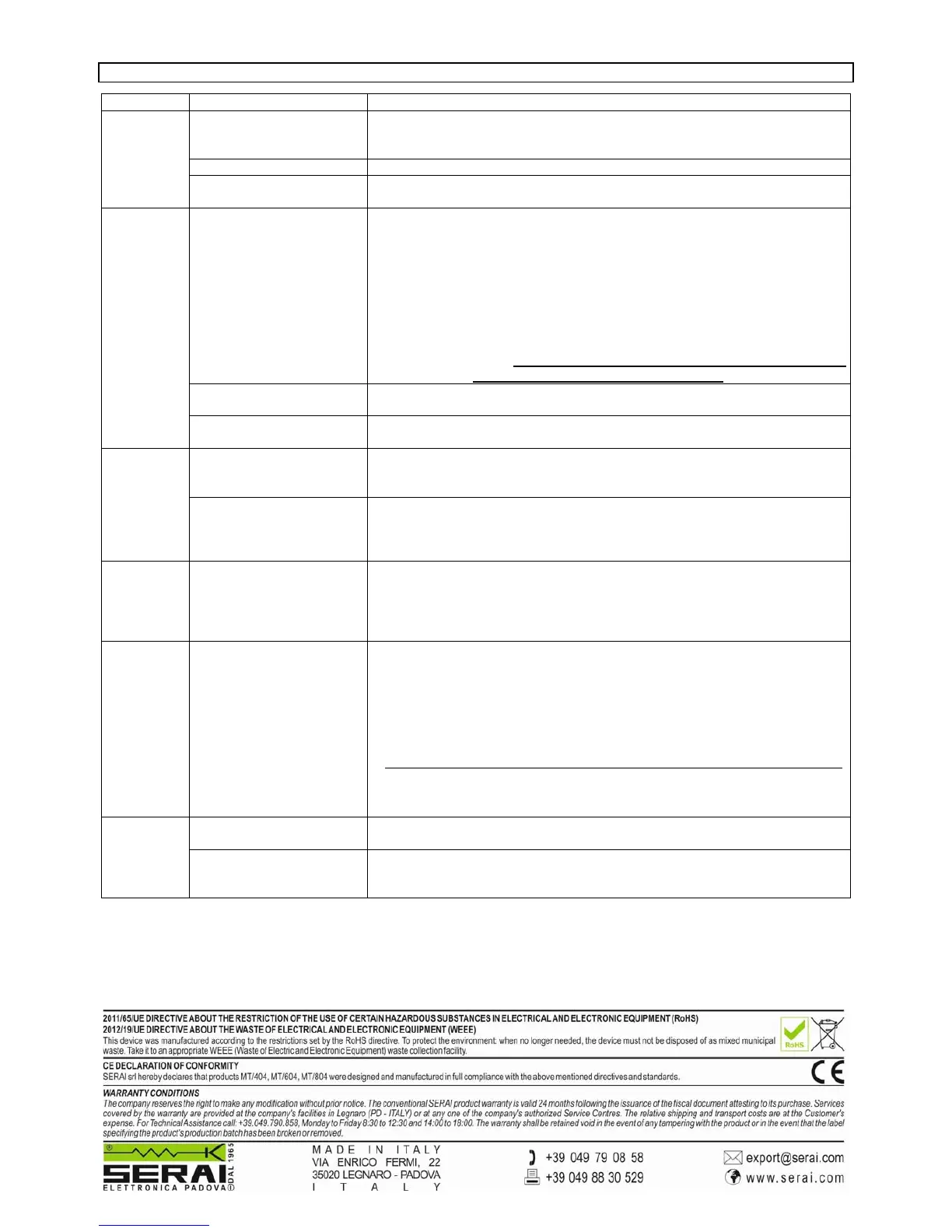 PROBLEM CAUSE SOLUTION (to be applied only by qualified personnel, i.e. the Installer)