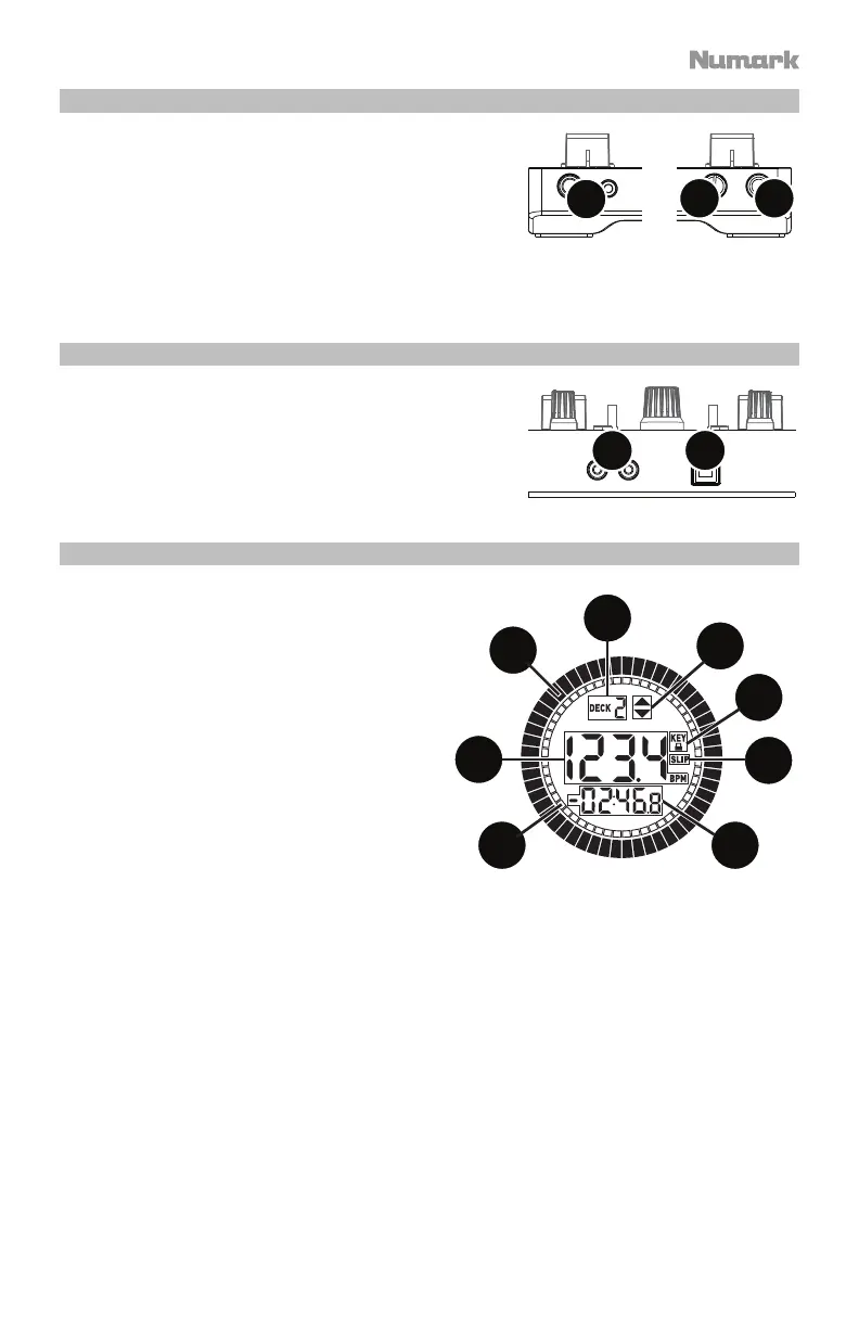 6. Pitch Adjust: Indicates the direction to move the Pitch Fader to match the current