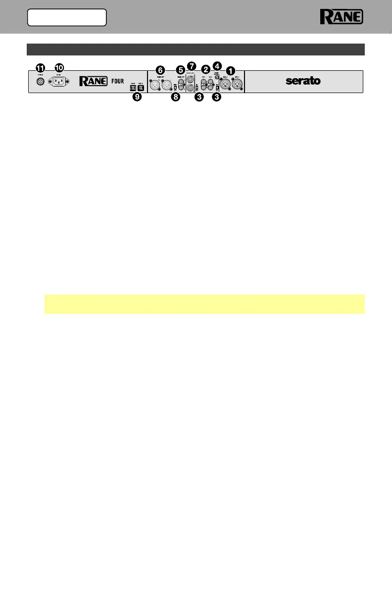 2. Deck Phono/Line In (RCA): Connect these inputs to an external audio source or