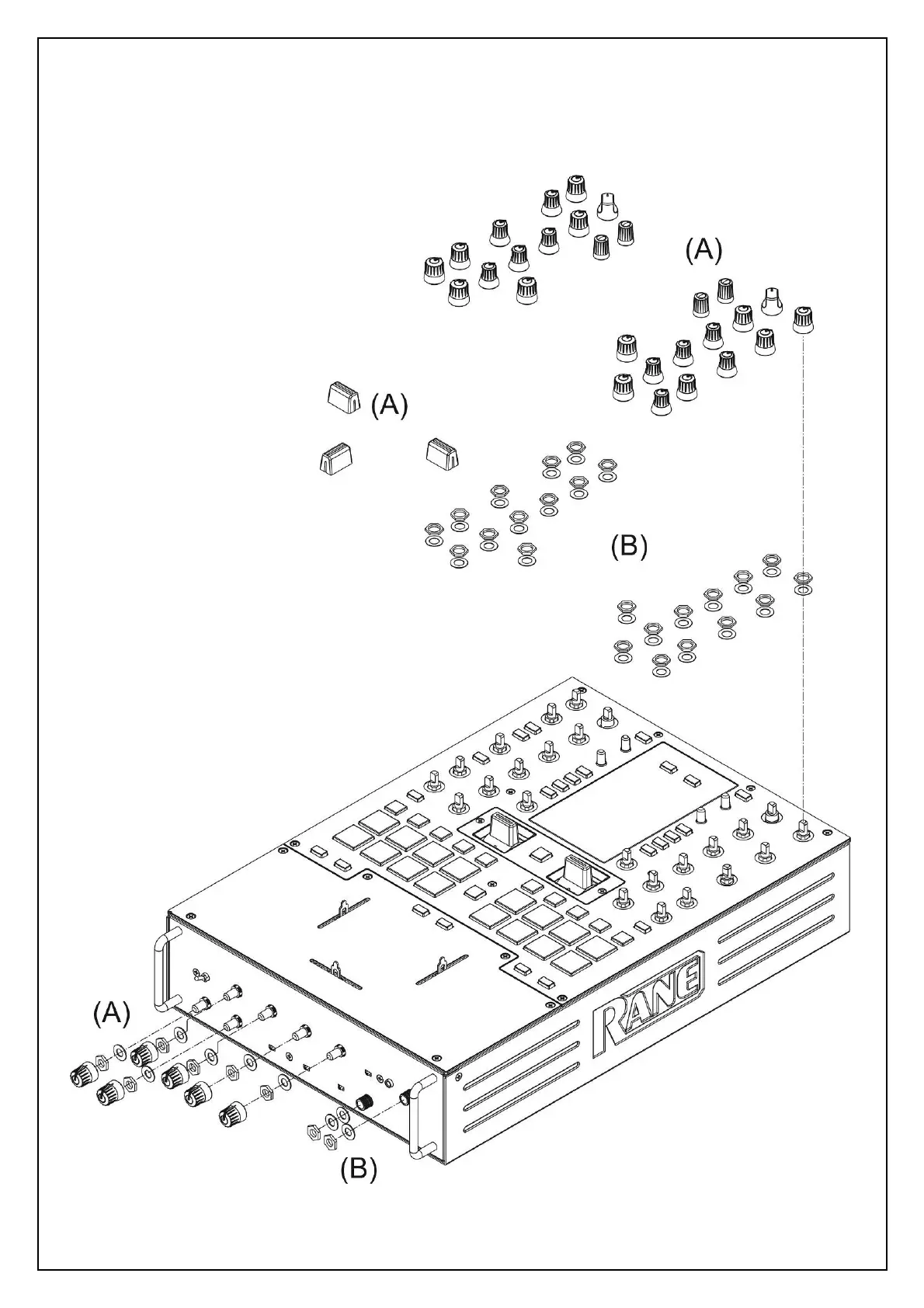 (A) REMOVE THE 34 PCS KNOB AND 3 PCS VR CAP BEFORE REMOVAL OF PANEL.