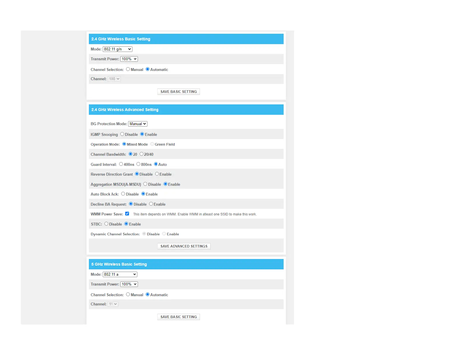 Sercomm DG4244 - Configuring 2.4 GHz Wireless Settings; Basic 2.4 GHz Wireless Settings; Advanced 2.4 GHz Wireless Settings