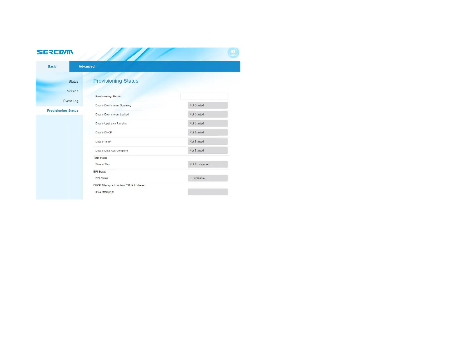 Login: technician / Password: sercommdocsis