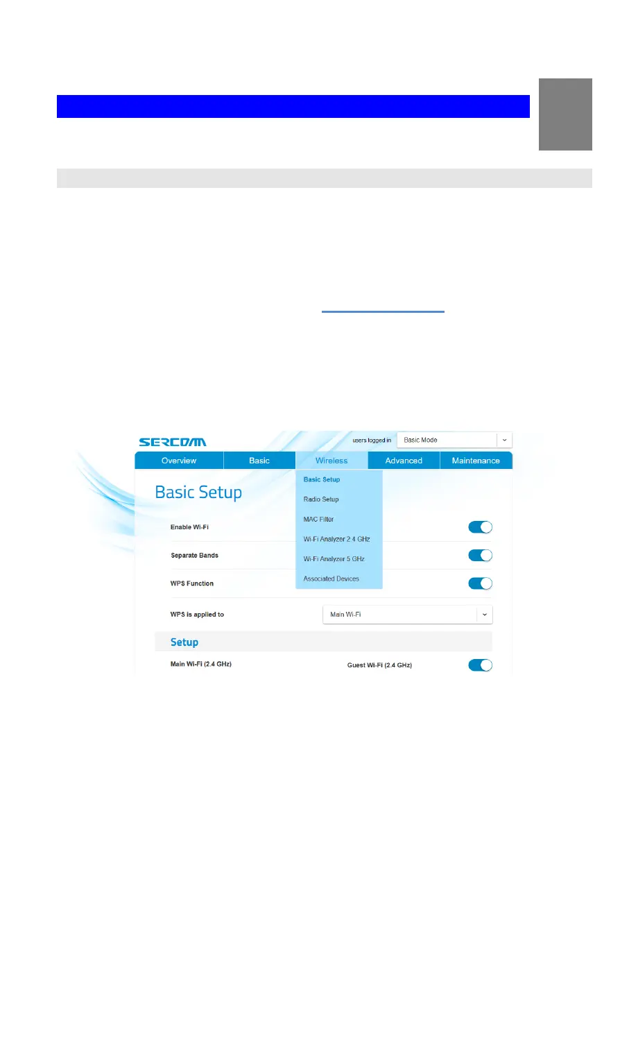 Step 6: Choose the Wireless page, click Basic Setup, you can set your WiFi