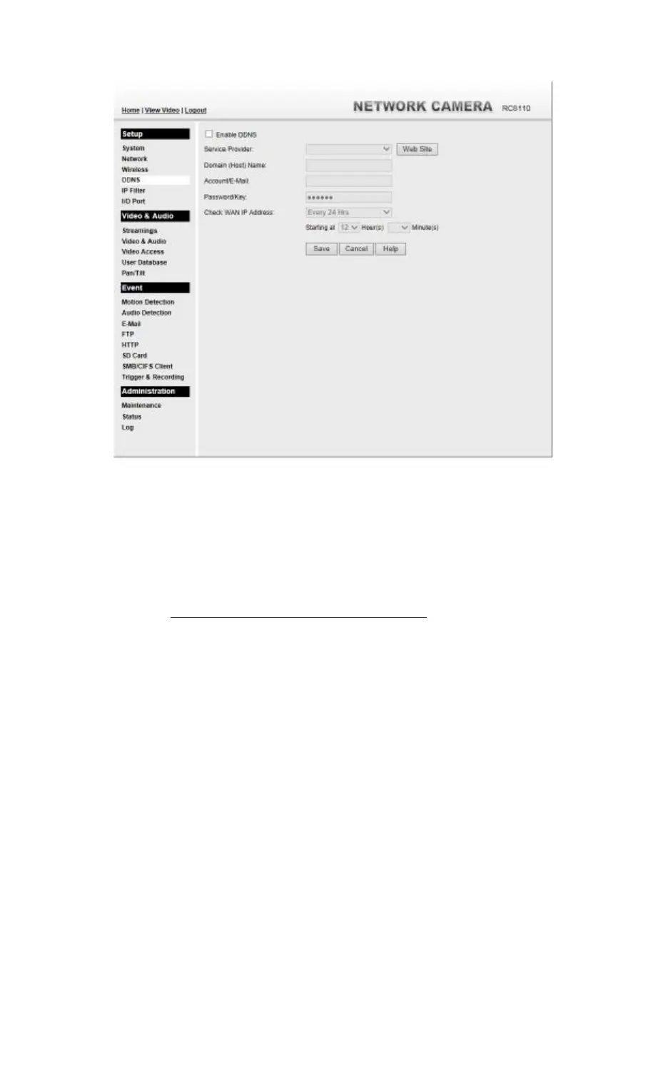Example: HTTP://mycamera.dyndns.tv:1024