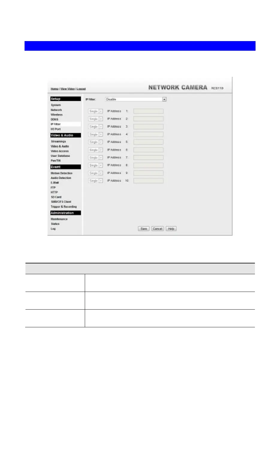 The IP Filter feature allows administrator to control Wireless HD IP Camera access by filtering