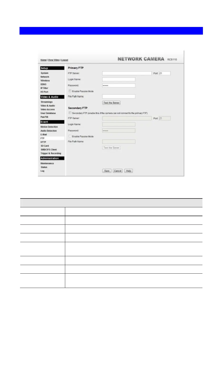 Secondary FTP Check the box to upload to the Secondary FTP if the camera can not