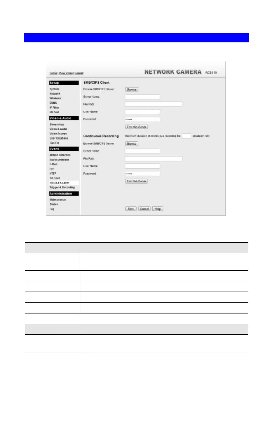 This screen is displayed when the SMB/CIFS Client option on the Event menu is clicked.