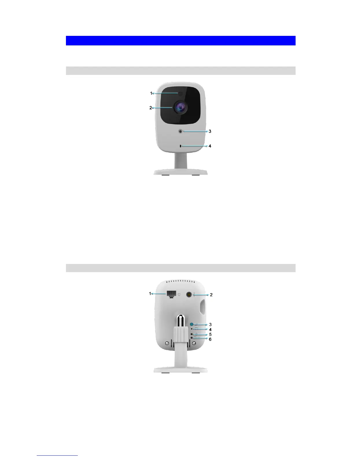 Sercomm RC8111 - Physical Details - Wireless Network HD Camera; Front Panel; Rear Panel