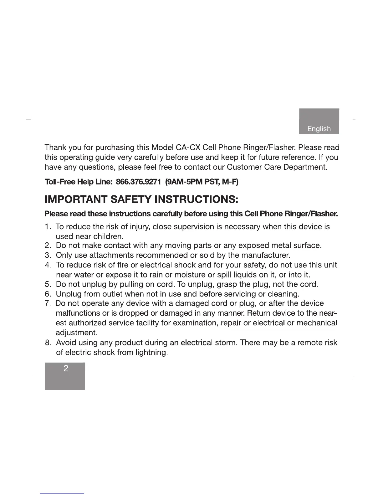 Serene Central Alert CA-CX - IMPORTANT SAFETY INSTRUCTIONS