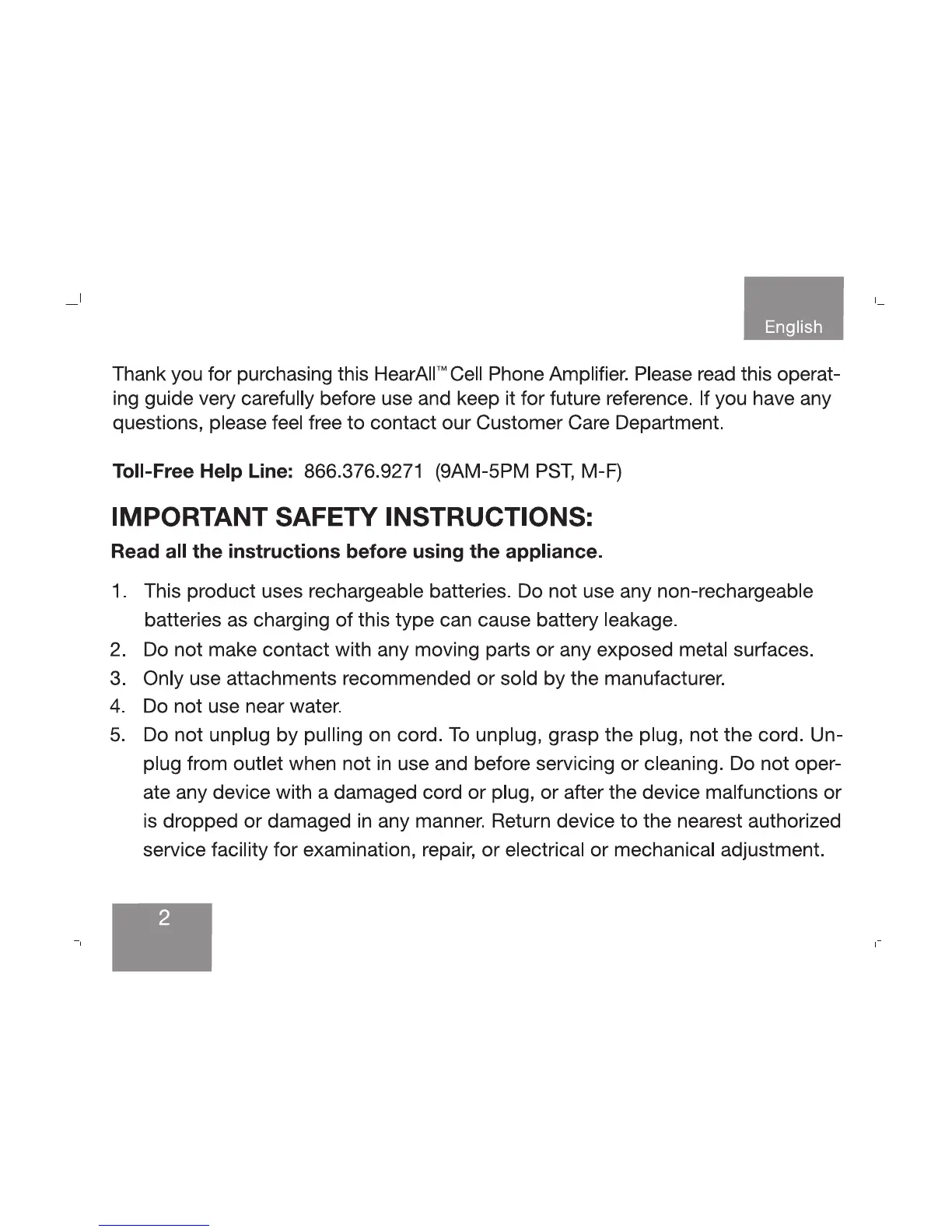 Serene HearAll - IMPORTANT SAFETY INSTRUCTIONS; General Safety Precautions