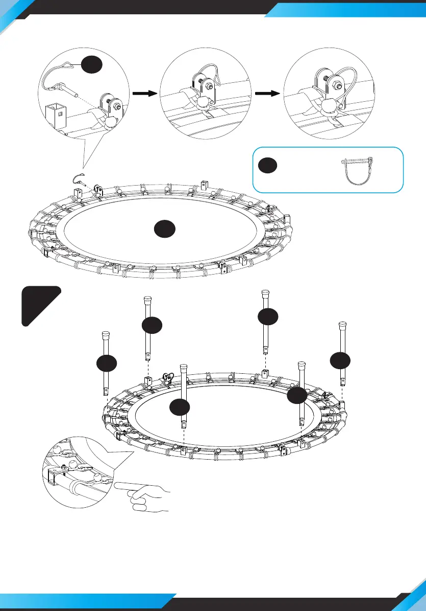 trampoline A with M, so as to install the safety poles and cross bar next. Install