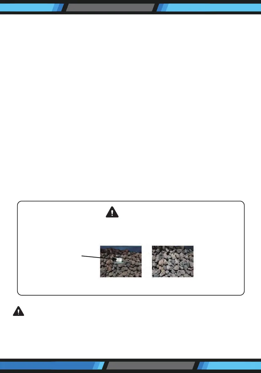 • Do not exceed 1/4" depth of re glass or small lava rocks directly above burner