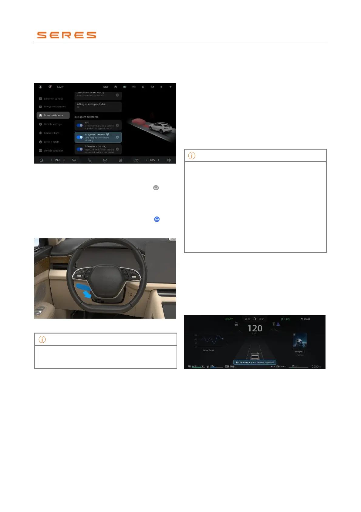 steering wheel" pop-up warning. Please grip the
