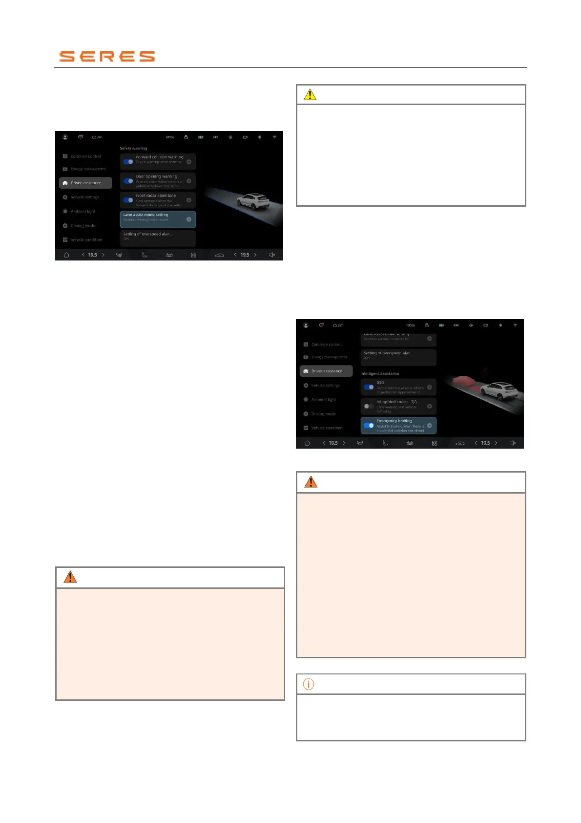 • Disabling the Emergency Braking function only