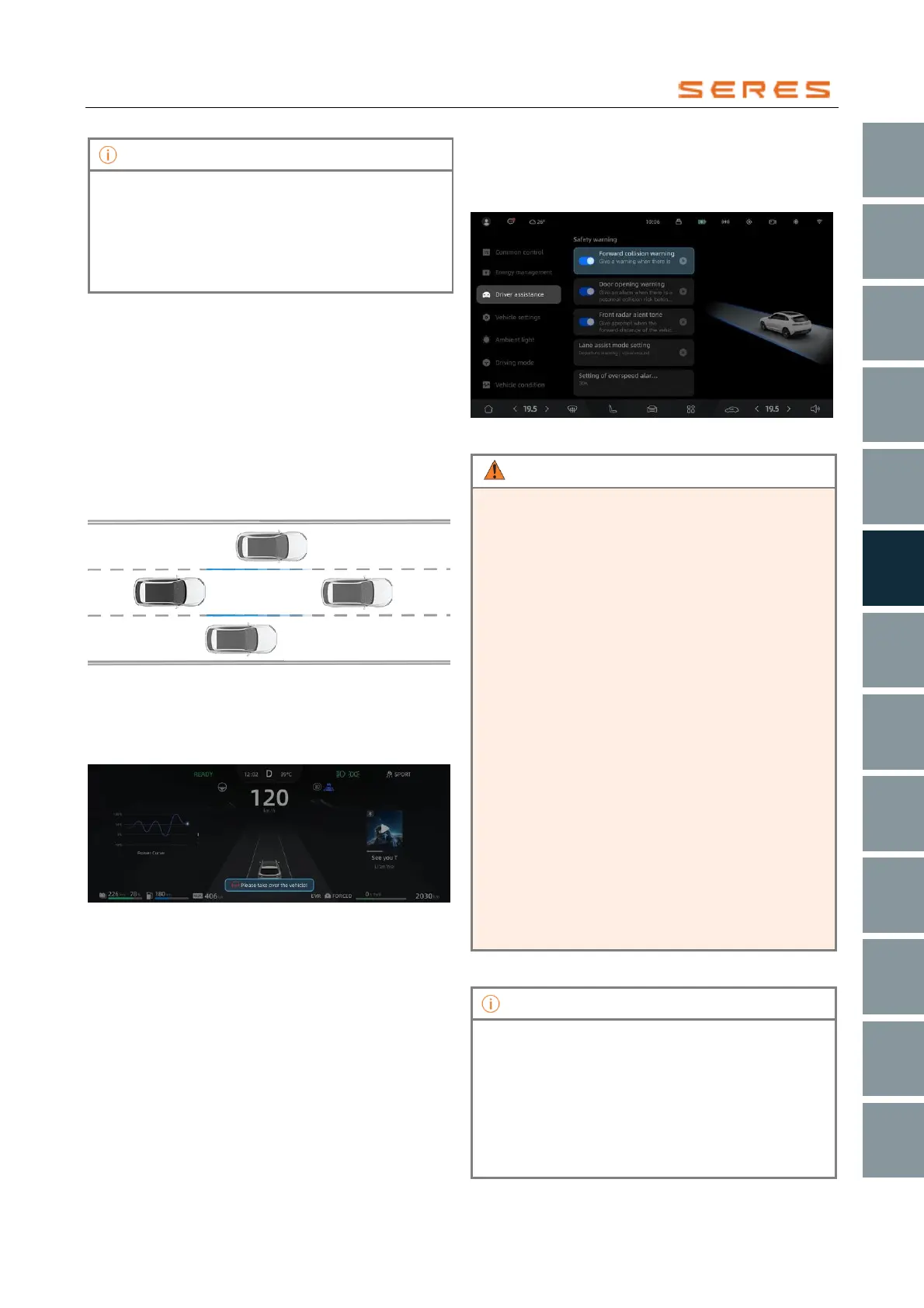 display screen, warning sounds, and brake point
