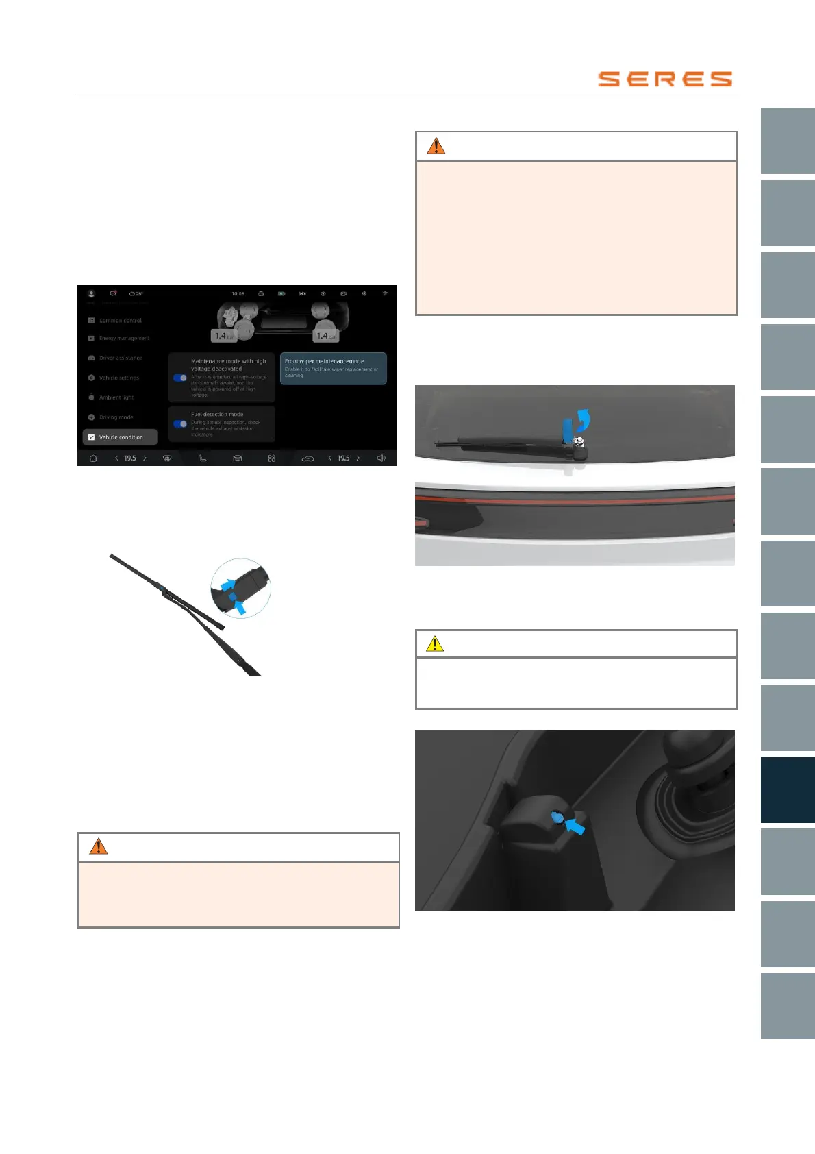 to enable the front wiper maintenance mode.
