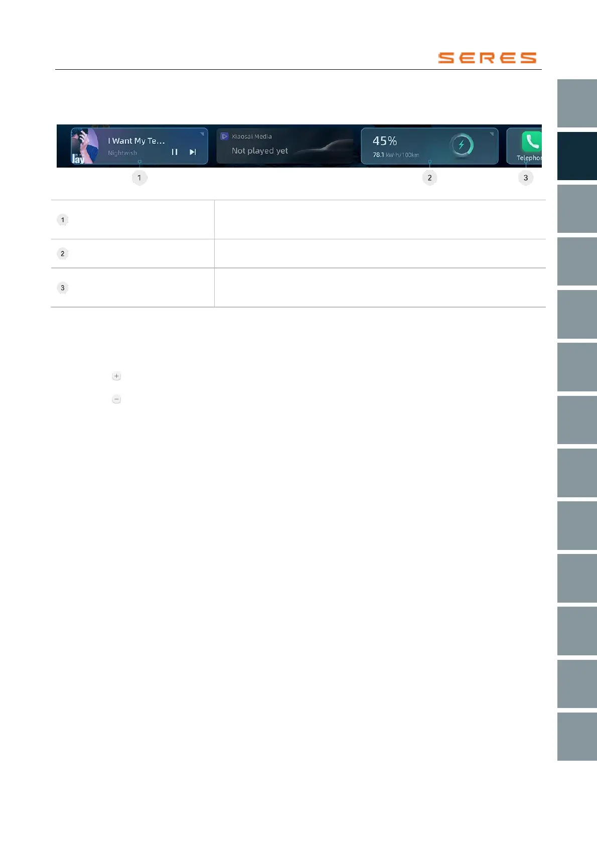 Display the current vehicle battery level and energy consumption information.