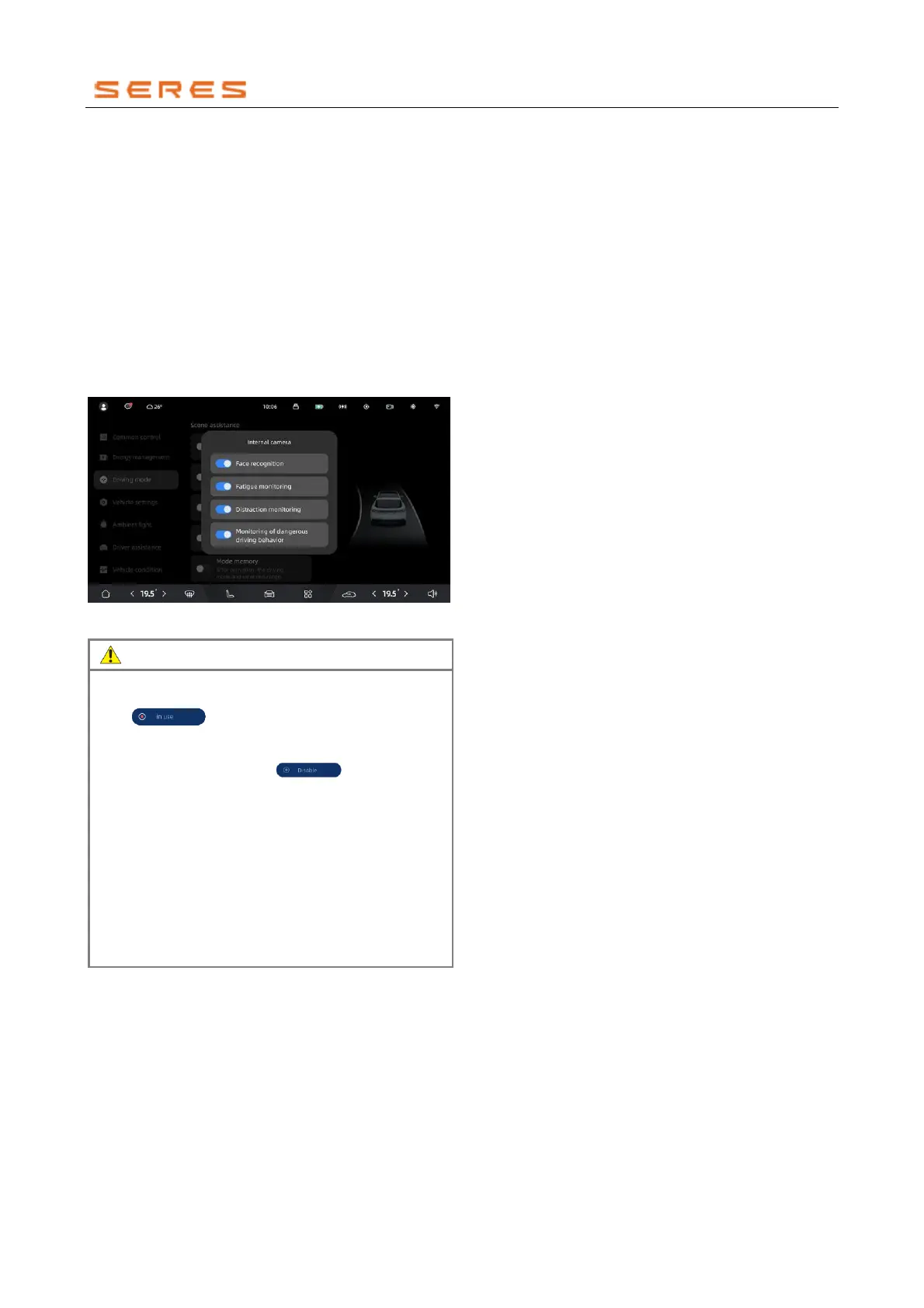 • When the in-Vehicle camera is disabled, the