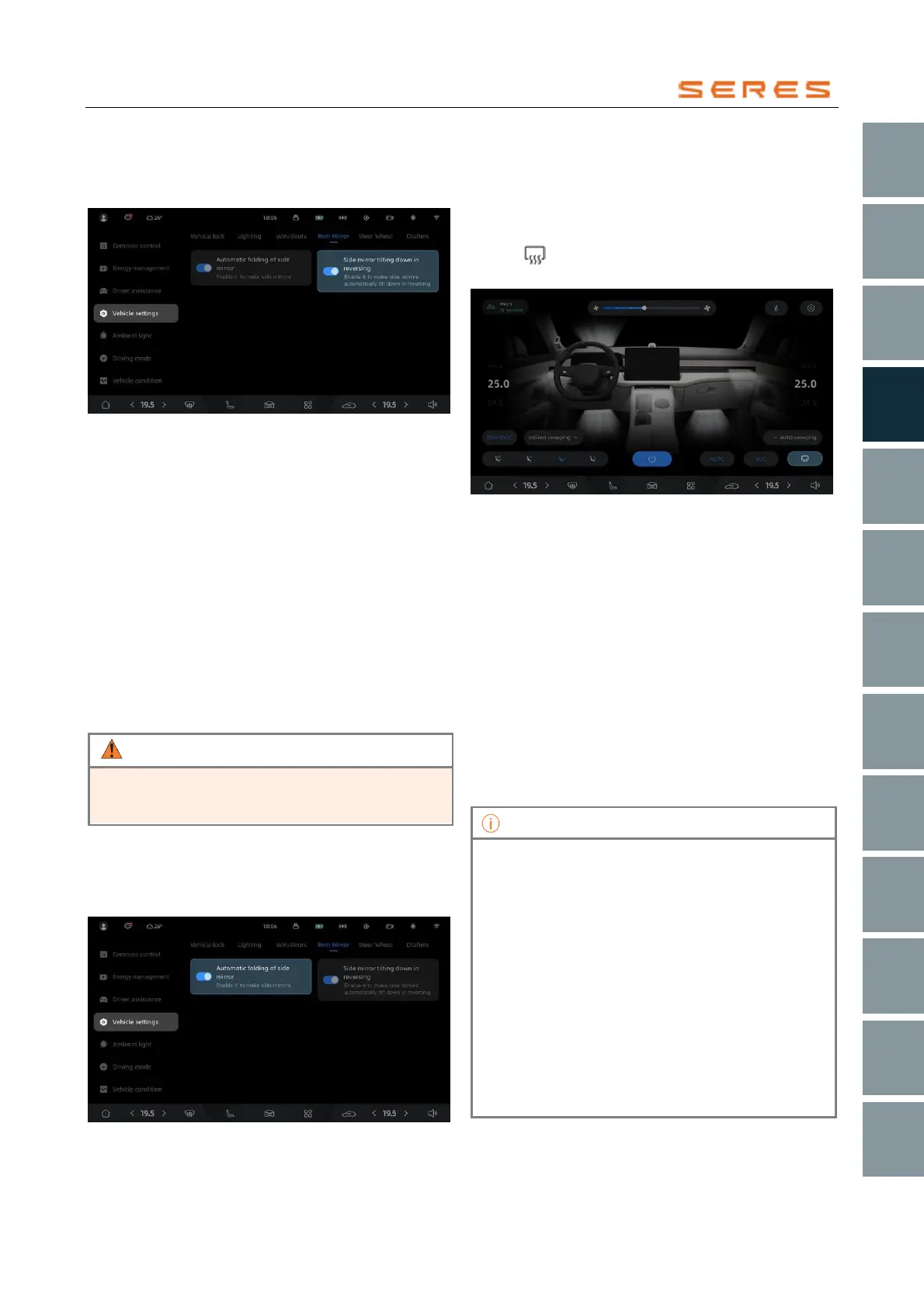 1. Open the automatic tilting function for the rearview