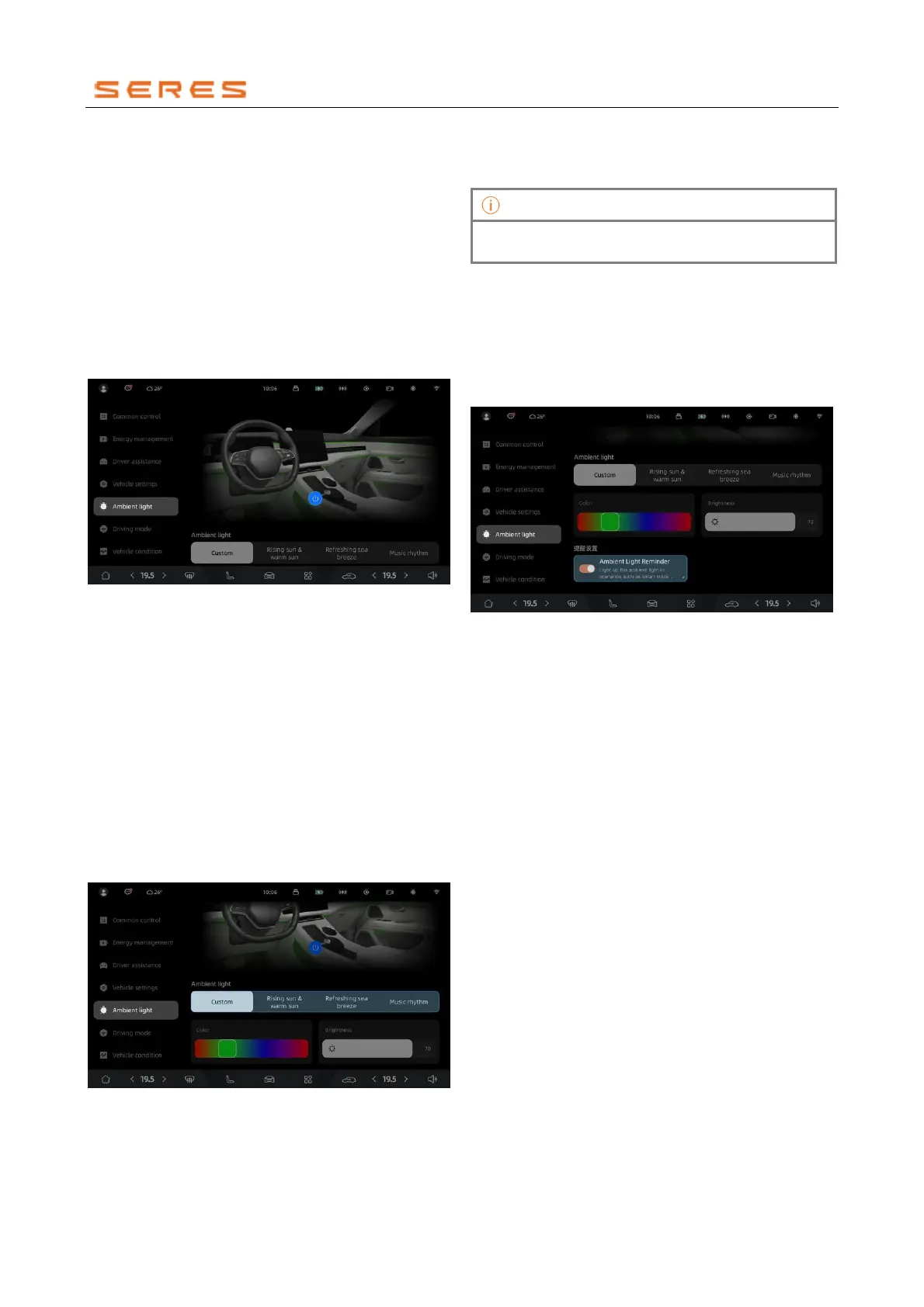 ● Access the ambient lighting controls by navigating to