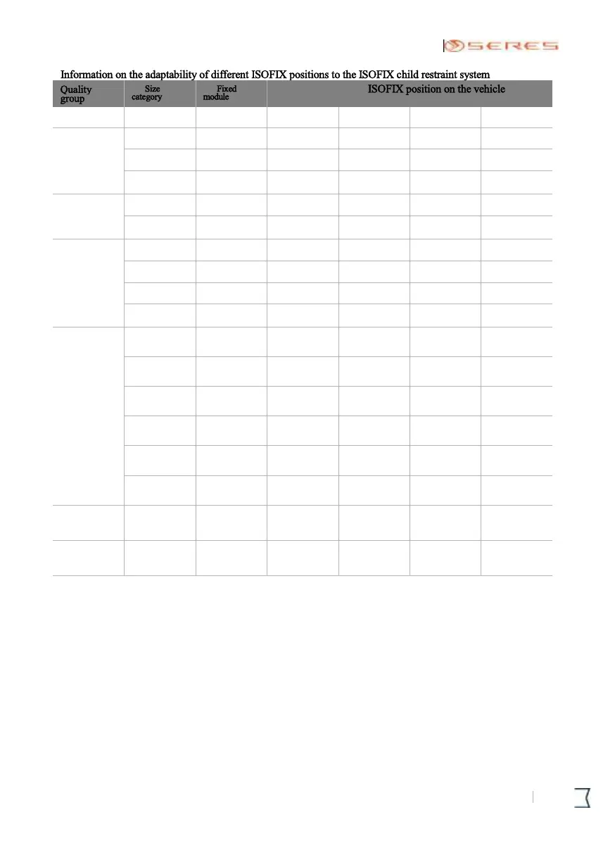 quality group, the vehicle manufacturer should specify the recommended ISOFIX child restraint system for
