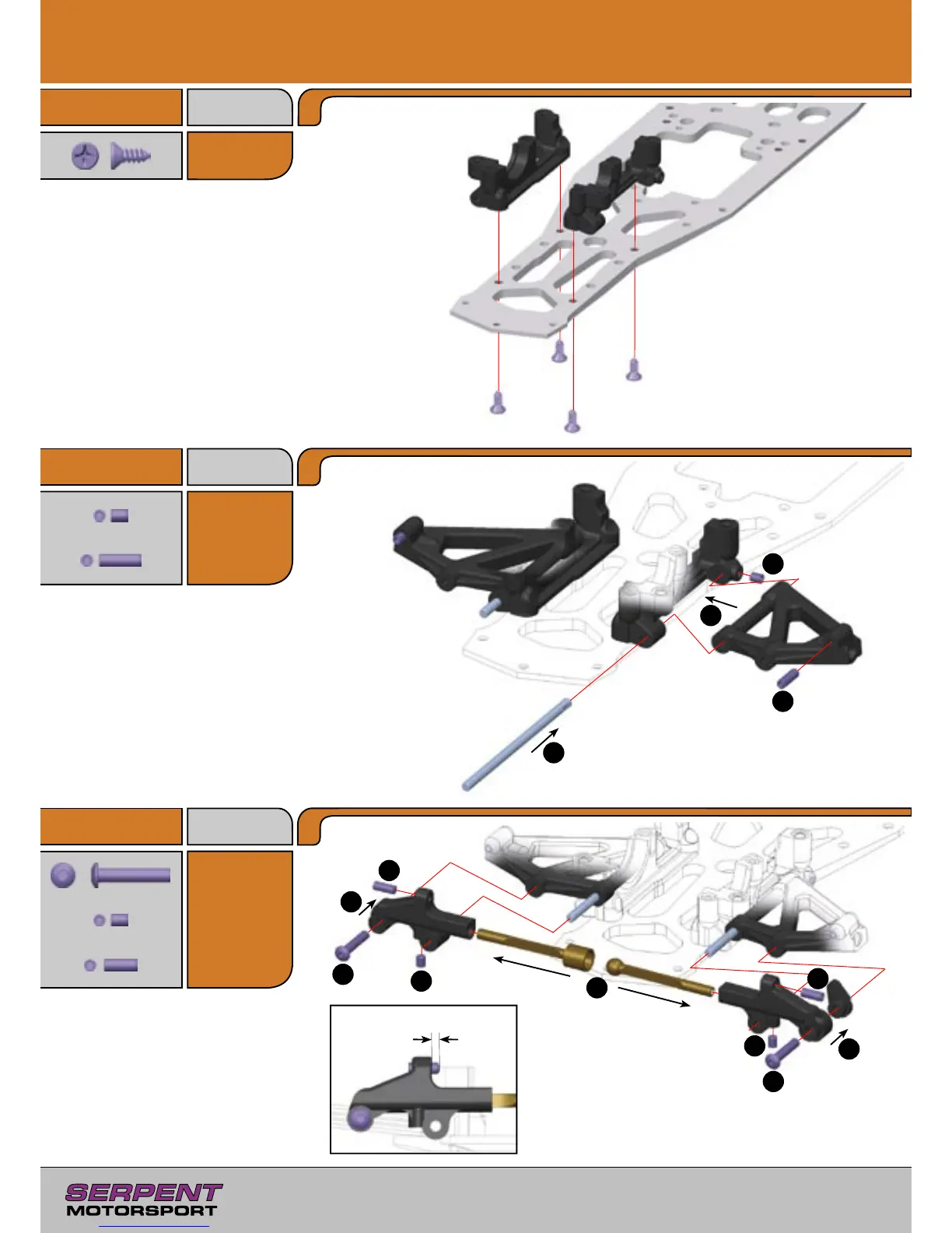 Serpent 710 - 1.0 Front Assembly; Front Lower Arm Assembly; Upstop and Roll Center Setup