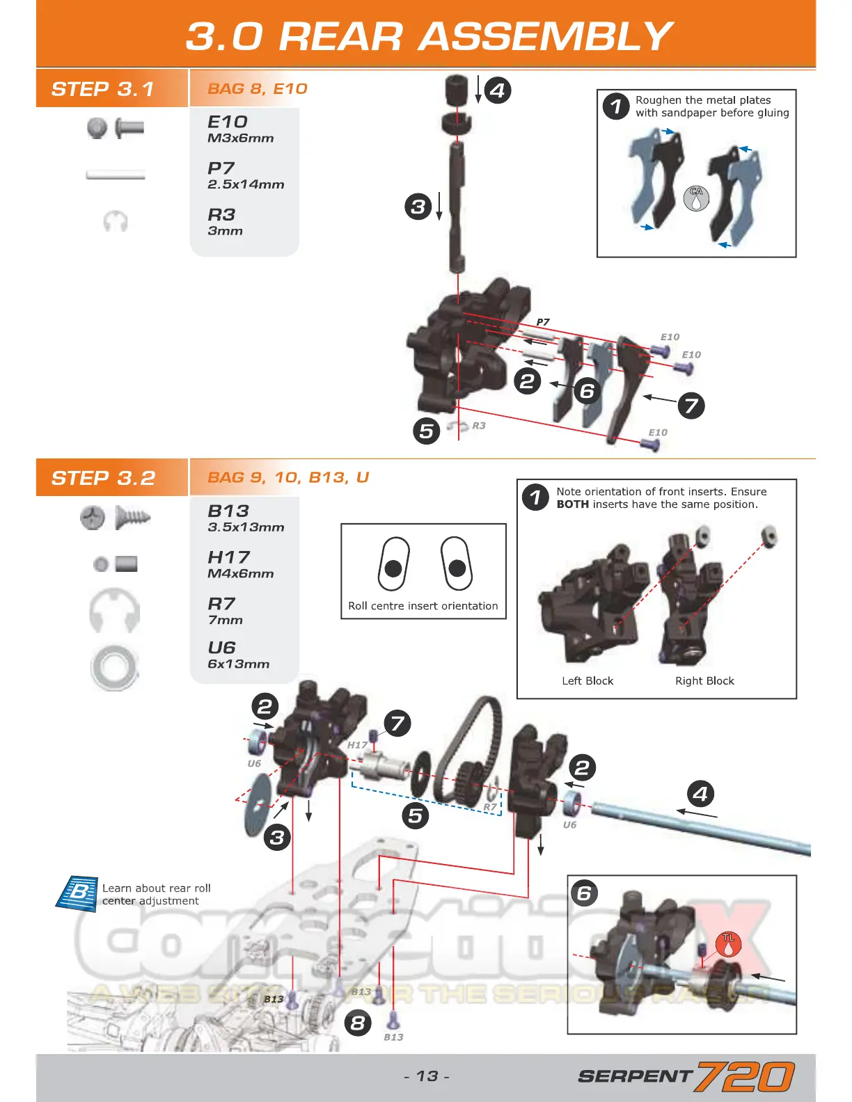 Serpent 720 - 3.0 REAR ASSEMBLY; REAR SUSPENSION PART ASSEMBLY; REAR SUSPENSION BLOCK ASSEMBLY
