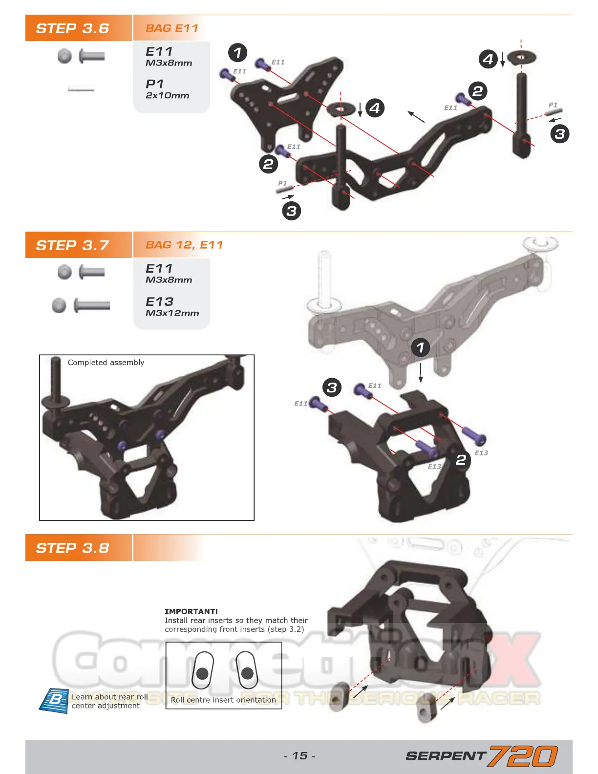 Serpent 720 - REAR SUSPENSION COMPONENT ASSEMBLY; REAR ROLL CENTER INSERT INSTALLATION