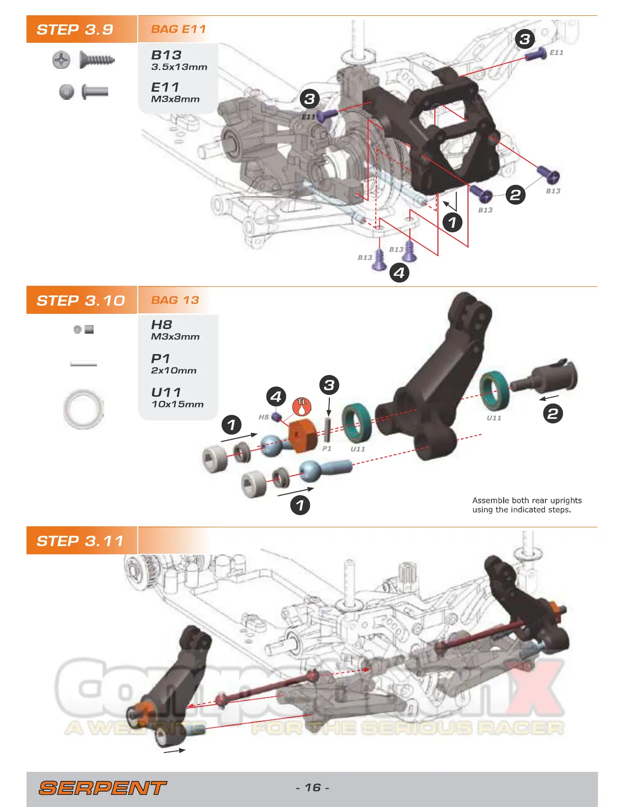 Serpent 720 - REAR UPRIGHT ASSEMBLY; REAR SUSPENSION LINK CONNECTION
