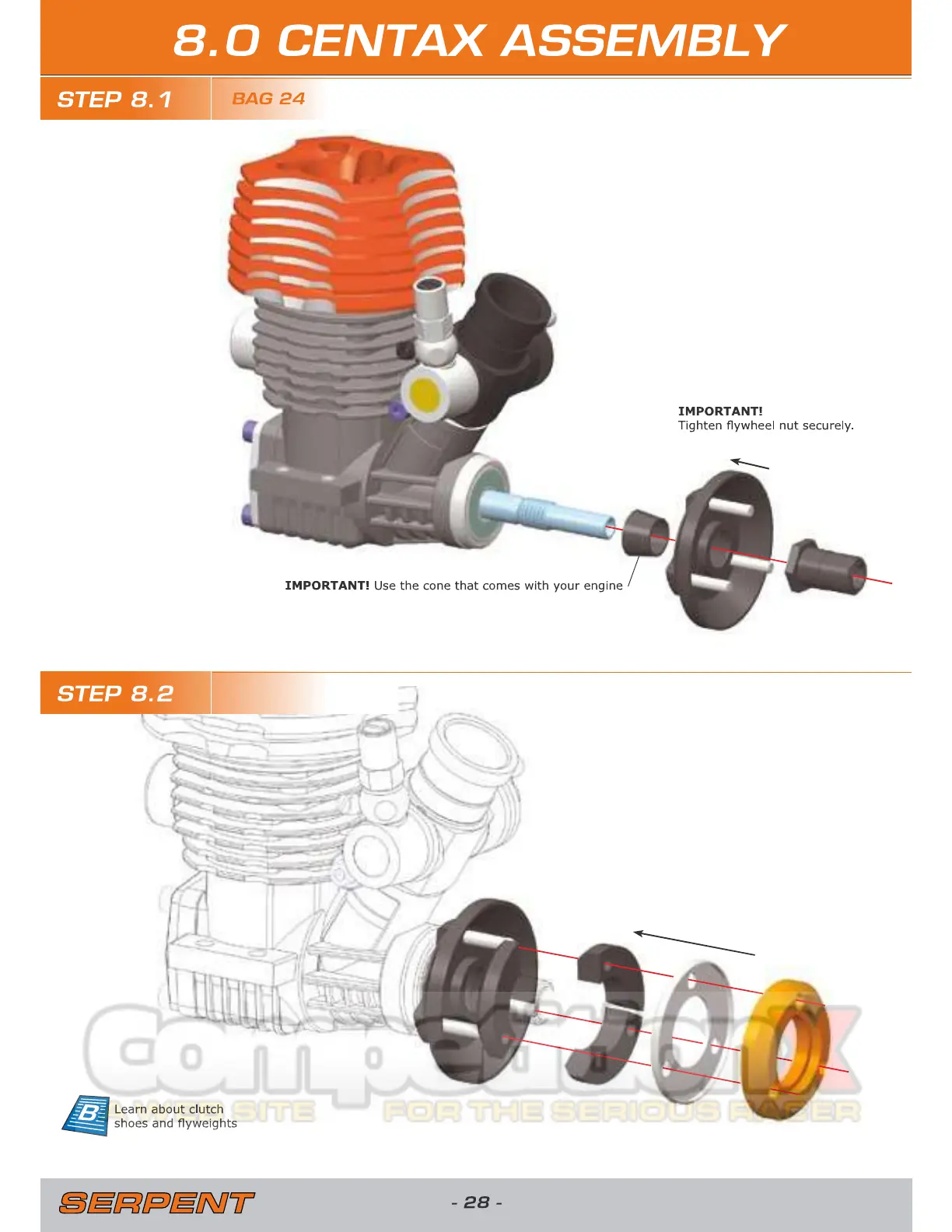 Serpent 720 - 8.0 CENTAX ASSEMBLY; ENGINE AND CLUTCH PREPARATION FOR INSTALLATION; INITIAL CLUTCH COMPONENT ASSEMBLY
