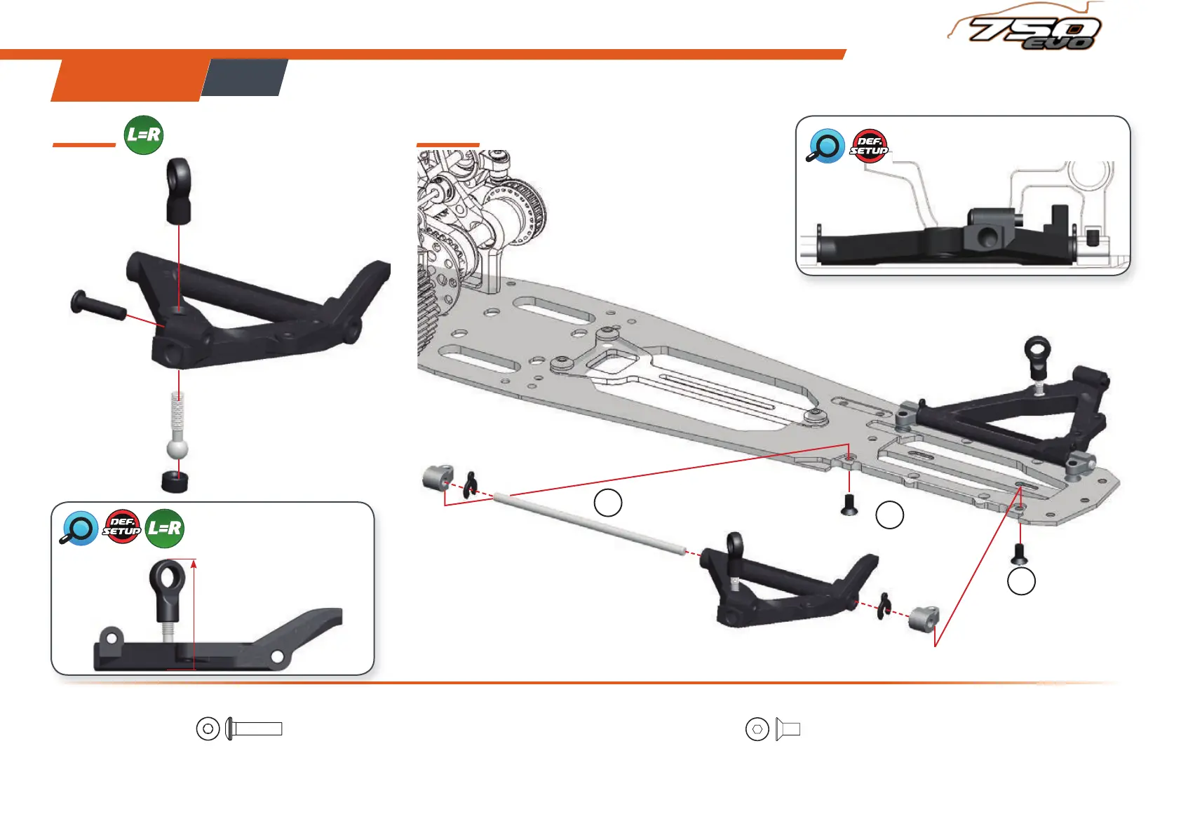 Serpent 750 EVO - Front Assembly; Front Antiroll Bar Rod Length; Front Default Wheelbase Shims