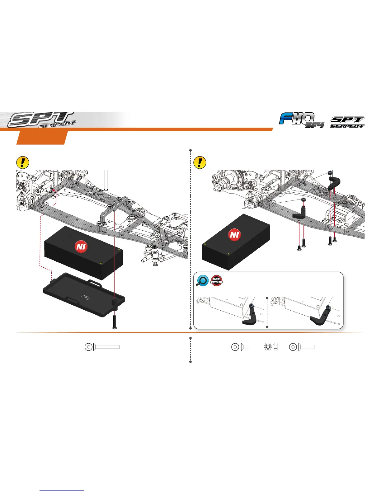 To assemble the battery it is needed to remove the M3x6 screw and turn the battery holder .