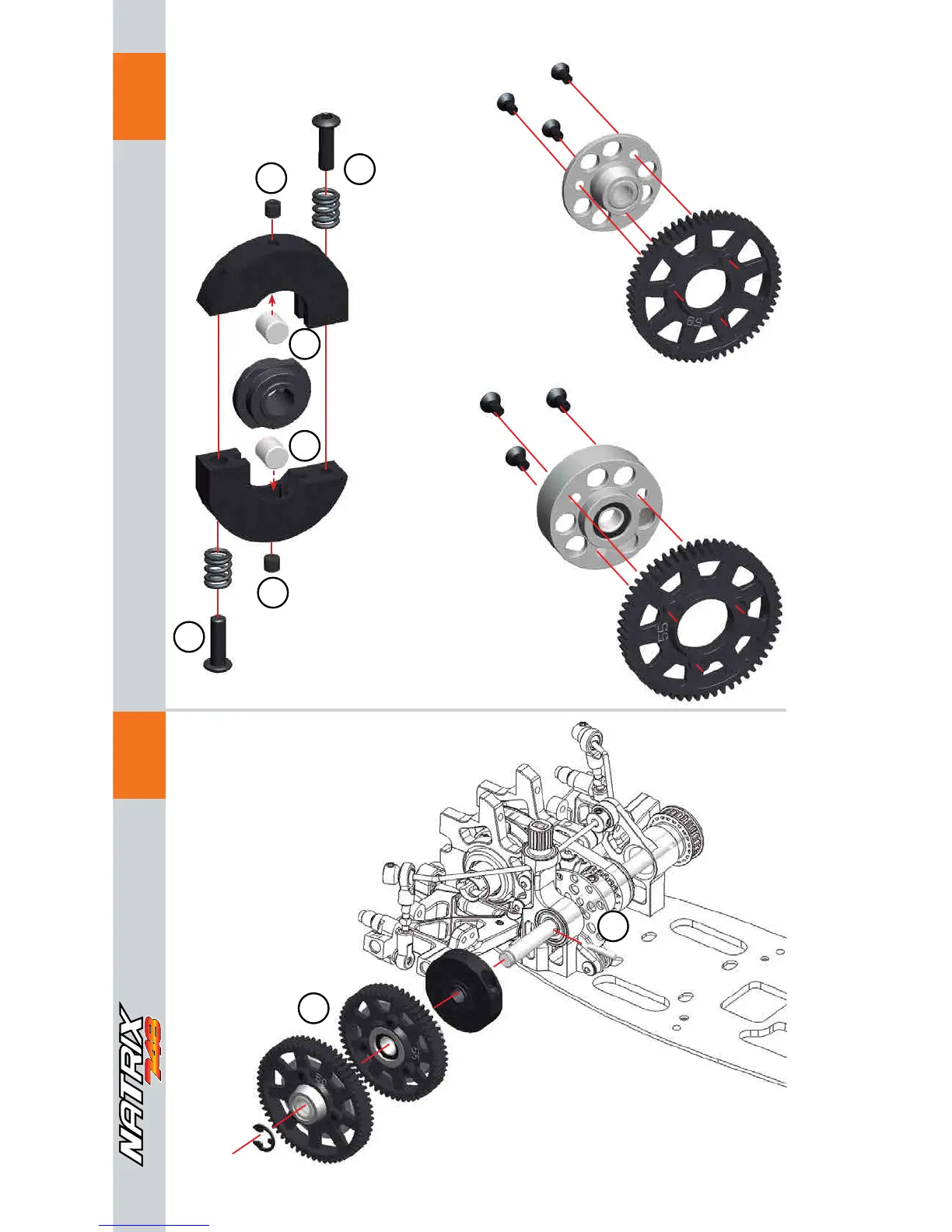 Serpent Natrix 748 - Gearbox Assembly; Gearbox: Internal Component Assembly; Gearbox: Mounting to Chassis