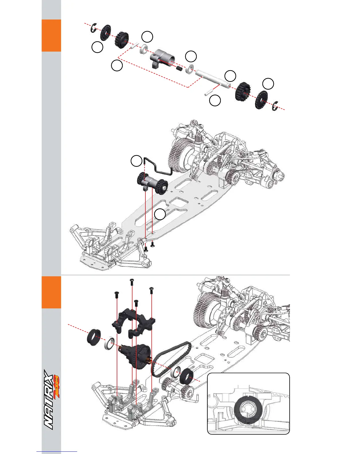 Serpent Natrix 748 - Front Assembly: Rear Hub Carrier and Drive Shafts; Front Assembly: Front Hub Carrier and Drive Shafts