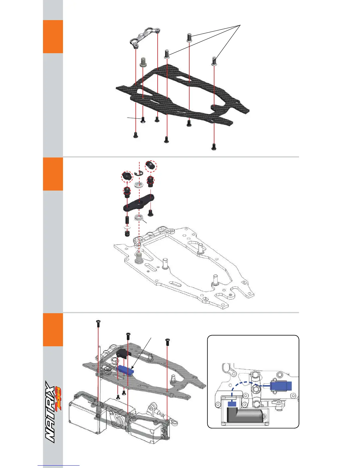 Serpent Natrix 748 - Radio Assembly: Fuel Tank and Radio Plate Mount; Radio Assembly: Receiver Mounting; Radio Assembly: Receiver Power Connection
