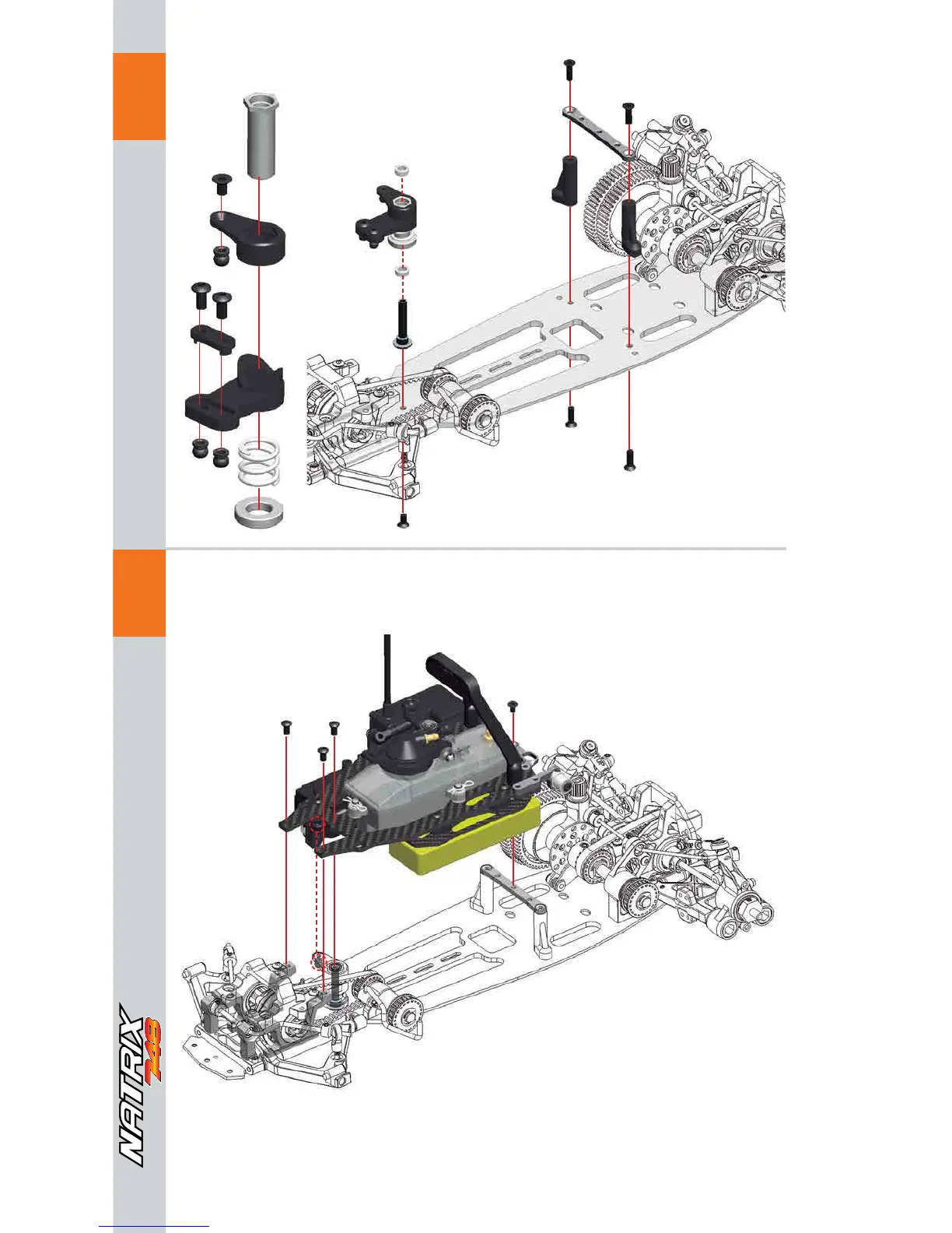 Serpent Natrix 748 - Radio Assembly: Engine Cooling and Exhaust Mount; Radio Assembly: Final Fuel Tank and Exhaust Fitment