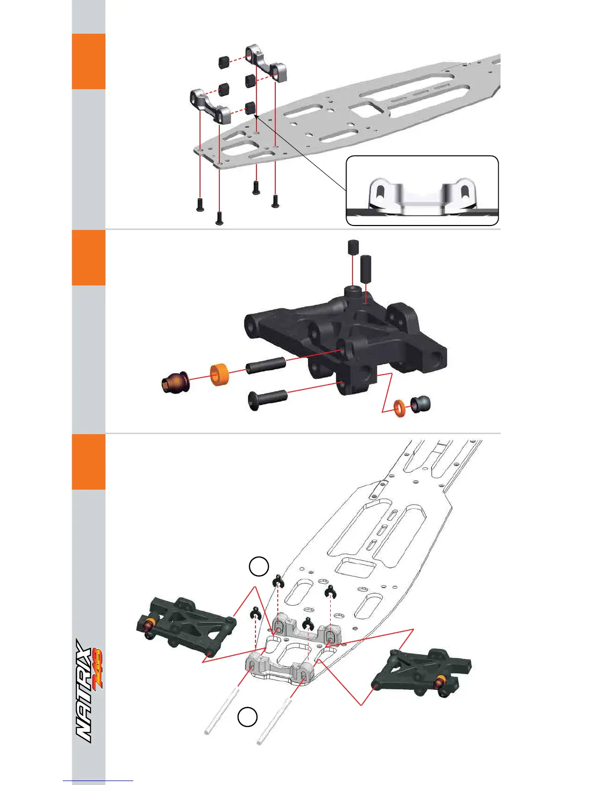 Serpent Natrix 748 - Rear Assembly; Rear Assembly: Chassis Mounts; Rear Assembly: Suspension Arm Mount; Rear Assembly: Hub Mounting